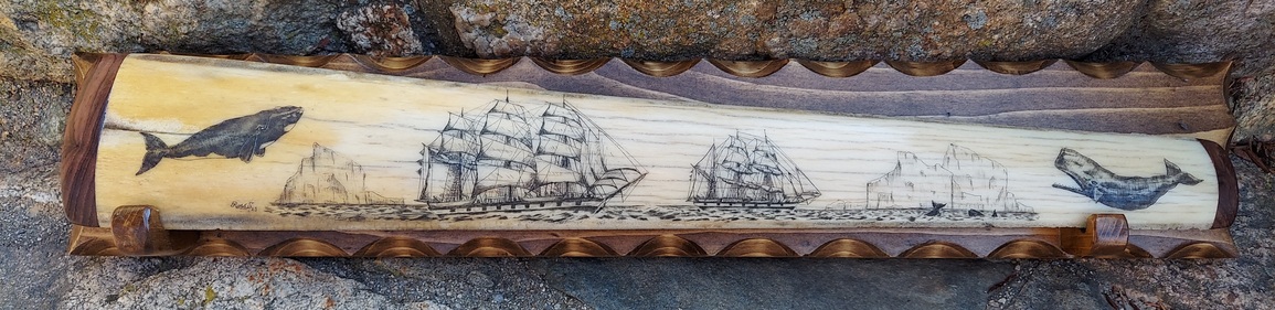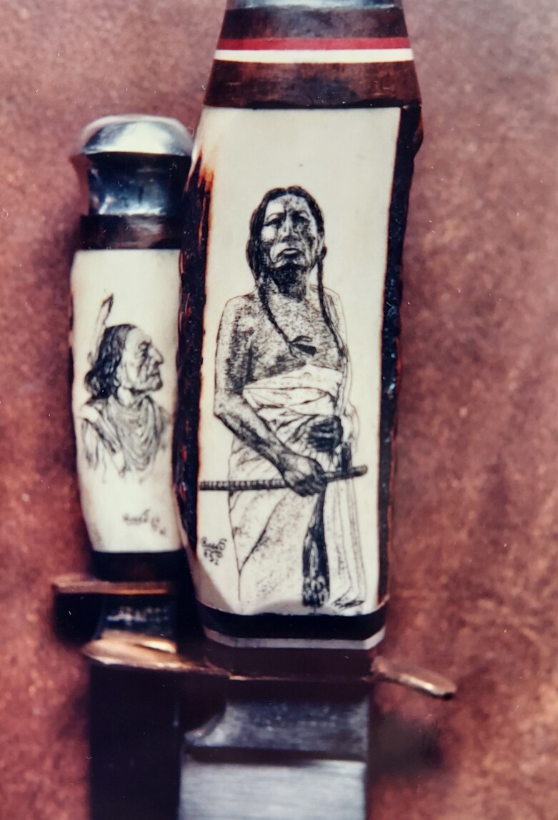 I had been creating Scrimshaw pieces for a living from the 1970s to the 1990s. I also became a skilled silver and goldsmith, hand engraver and wood carver.