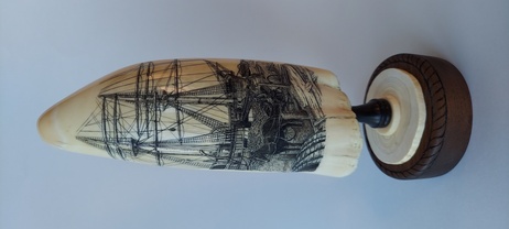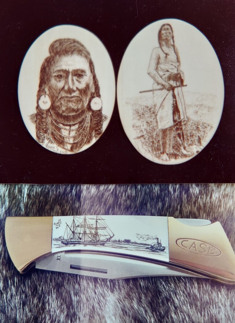 I had been creating Scrimshaw pieces for a living from the 1970s to the 1990s. I also became a skilled silver and goldsmith, hand engraver and wood carver.