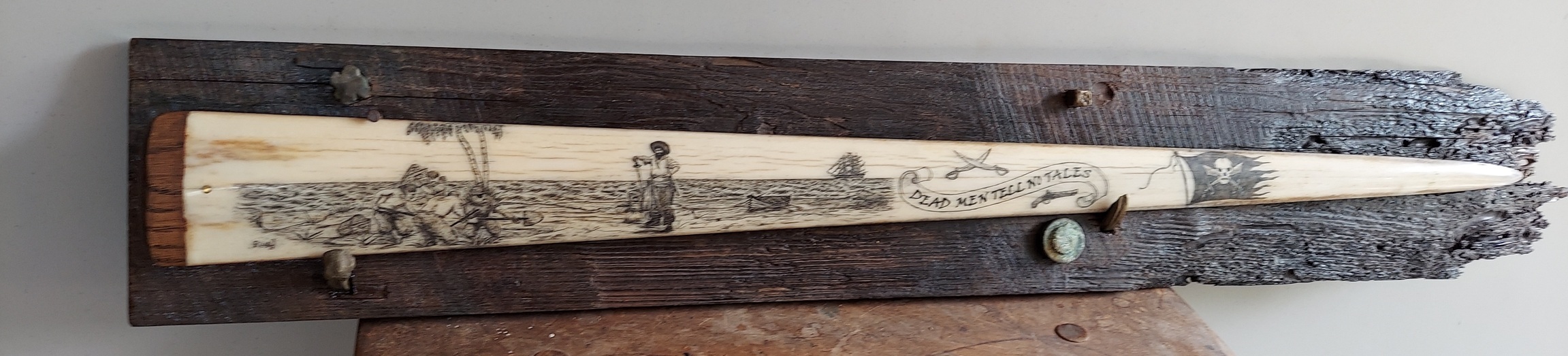 I had always said, “When I retire, I will scrimshaw again”. As you will see I am doing just that. On my website are current examples of my endeavors, present, and past. The scrimshawed whale teeth and swordfish bills are present. I am also showing a few examples of my carvings, and model making. To view my silver jewelry, you can click on AngelsAndWhimsy.